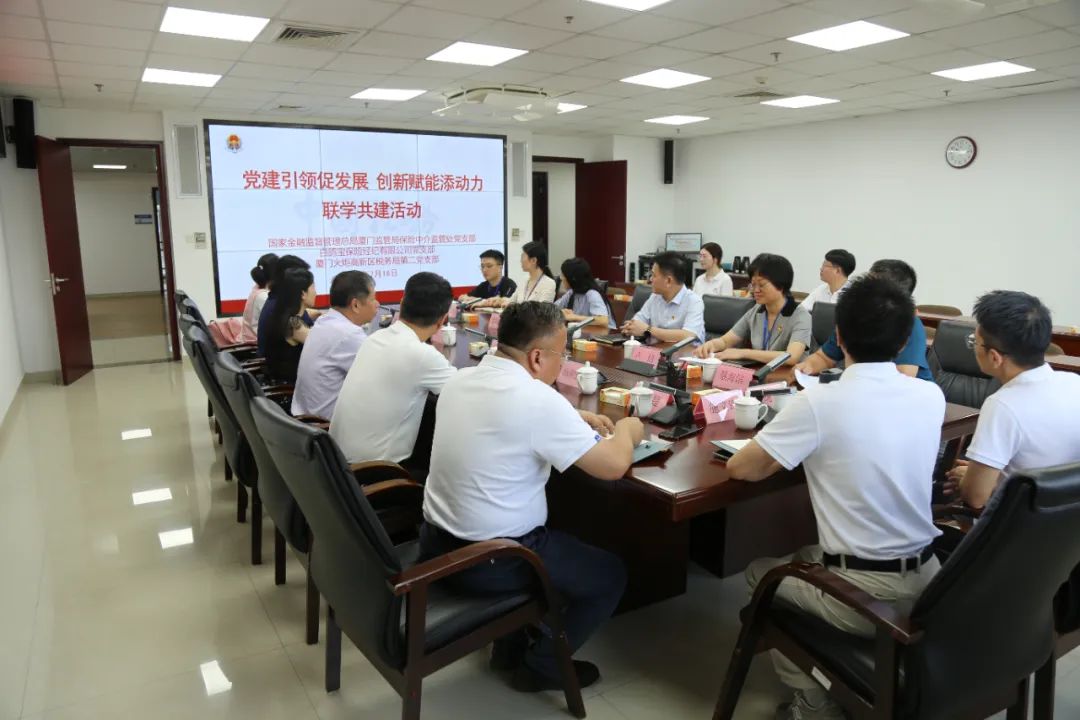 7月16日,为学习贯彻二十届三中全会精神,进一步深化对企业创新和税收政策的思考,国家金融监督管理总局厦门监管局保险中介监管处党支部、厦门火炬高新区税务局第二党支部与白鸽宝保险经纪有限公司党支部联合开展“党建引领促发展 创新赋能添动力”联学共建活动。国家金融监督管理总局厦门监管局保险中介监管处党支部书记、处长周建雄,厦门火炬高新区税务局党委书记、局长张海滨,白鸽在线党支部书记、董事长涂锦波,白鸽宝党支部书记梁志超等领导及各党支部成员代表参加了活动。